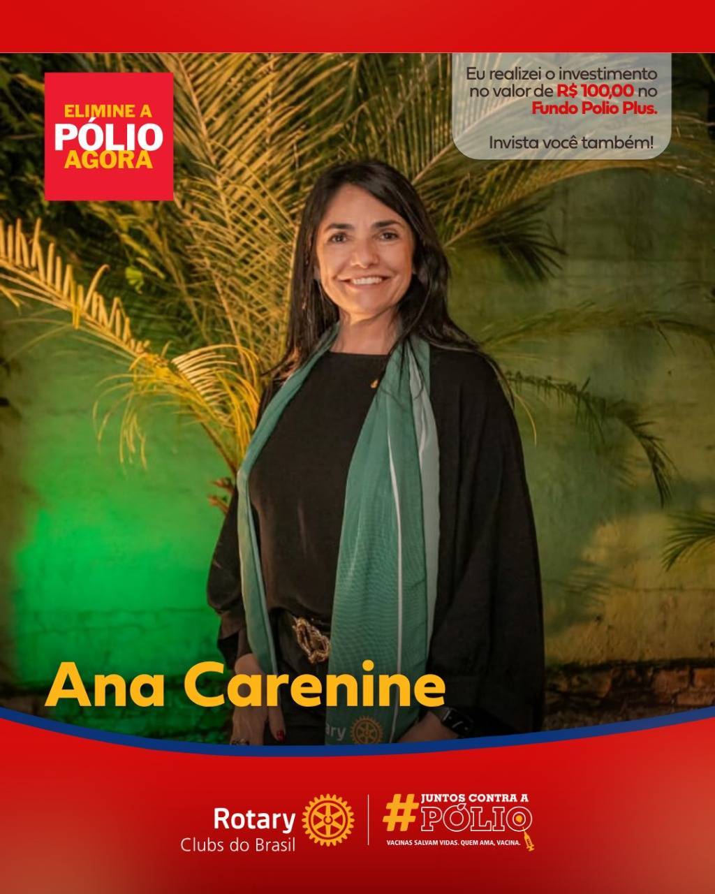 Nossa Presidente 2025-26 Ana Carenine investiu na campanha Pólio Plus