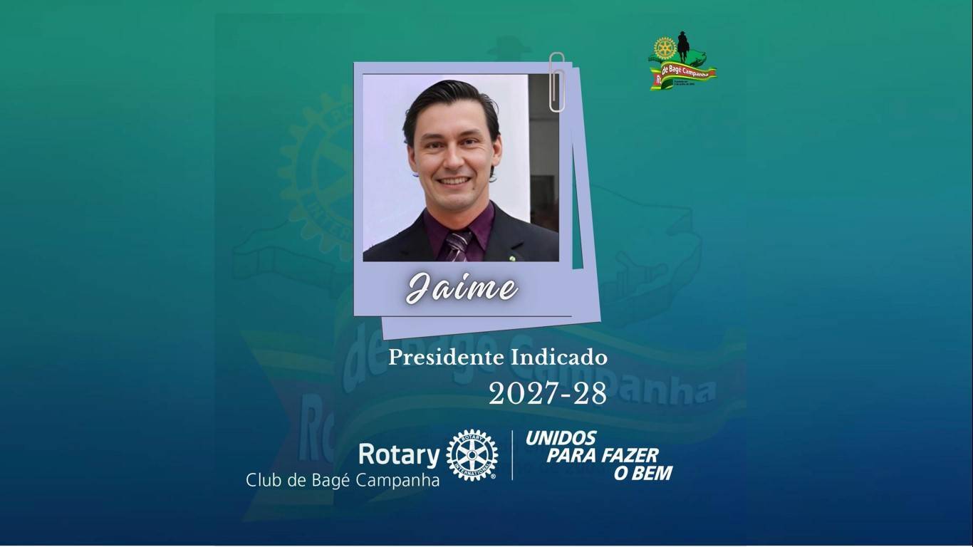 O Rotary Club de Bagé tem a honra de apresentar o seu presidente indicado para o ano rotário de 2027-28: Jaime Tadeu Barbosa Viviam Júnior.